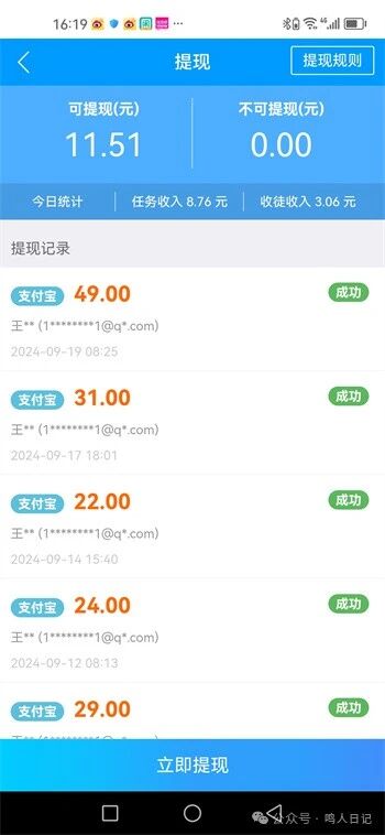 我建议大家不用浪费太多的时间,每天签到就可以,任务,简单的做做,有的平台,每次就只能提现3毛钱,但是是个软件提现完成后,关闭,累积下来也有三四块钱!羊毛不薅白不薅羊!