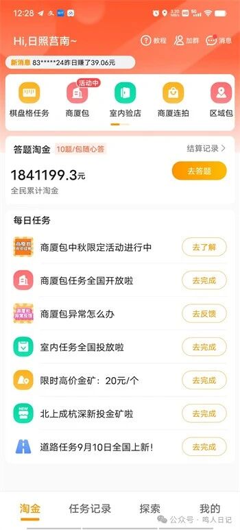 于是高德地图推出了自己的灵活外包平台——高德淘金app,这个平台我知道有一些外卖小哥做的比较多,毕竟很多的任务,其实就是一张照片而已!有的需要你沿着这个路走过去录一个像就可以完成任务!